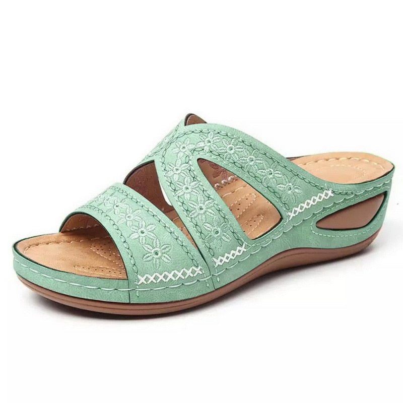 New Women Summer Orthopedic Sandals Women Car Line Slides Open Toe Sandals Breathable Leather Casual Female Platform Retro Shoe 530