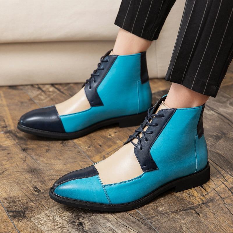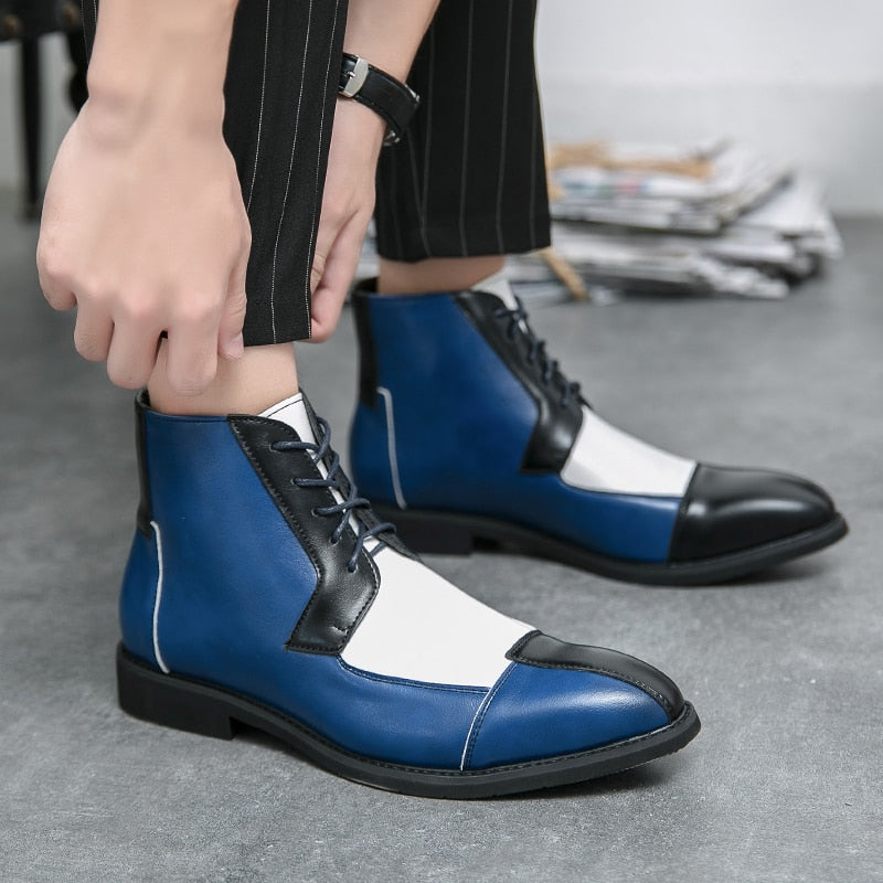 NEWEST Leather Boots Men Ankle Boots Splicing Business Shoes Fashion Microfiber Leather Shoes Big Size 38-48