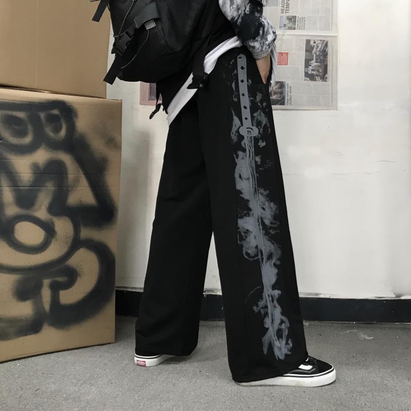 NiceMix 2020 Harajuku Flame Print Pants Women High Waist Straight Casual Hipster Trousers Pant For Men Women Fashion Streetwe
