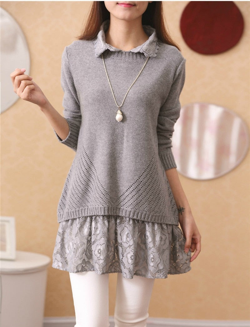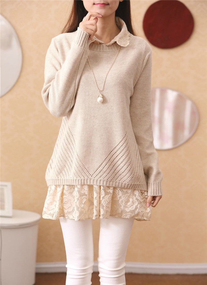 Women Sweaters And Pullovers Pull Femme: Sweet Kawaii Loose Sweater New Fashion Lace Patchwork