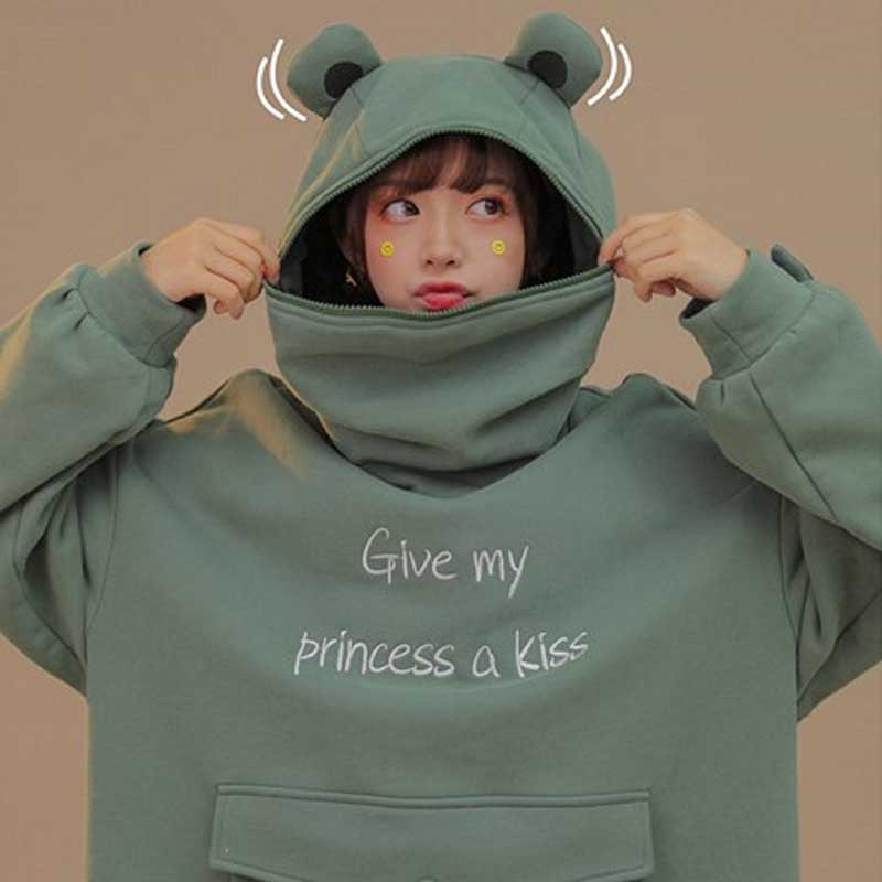 NiceMix Women Autumn Thick Loose Sweatshirt Harajuku Letters Printed Lovely Frog Casual Hooded Hoodies Pullover Female Thicken C