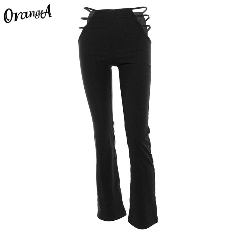 OrangeA Women Summer Sexy Hollow Out Fitness High Waist Pants Fitness Straight Y2K Street Clubwear Fashion Kpop Loose Trousers