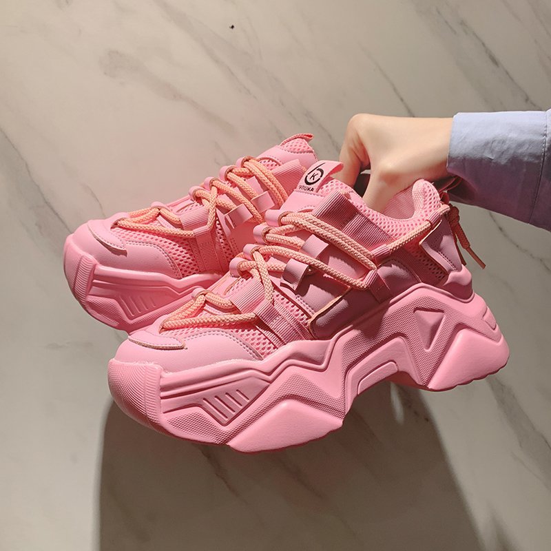 Platform Sneakers Women 2021 New Fashion Height Increasing Chunky Shoes Solid Pink Black Girls Casual Sneakers Trainers