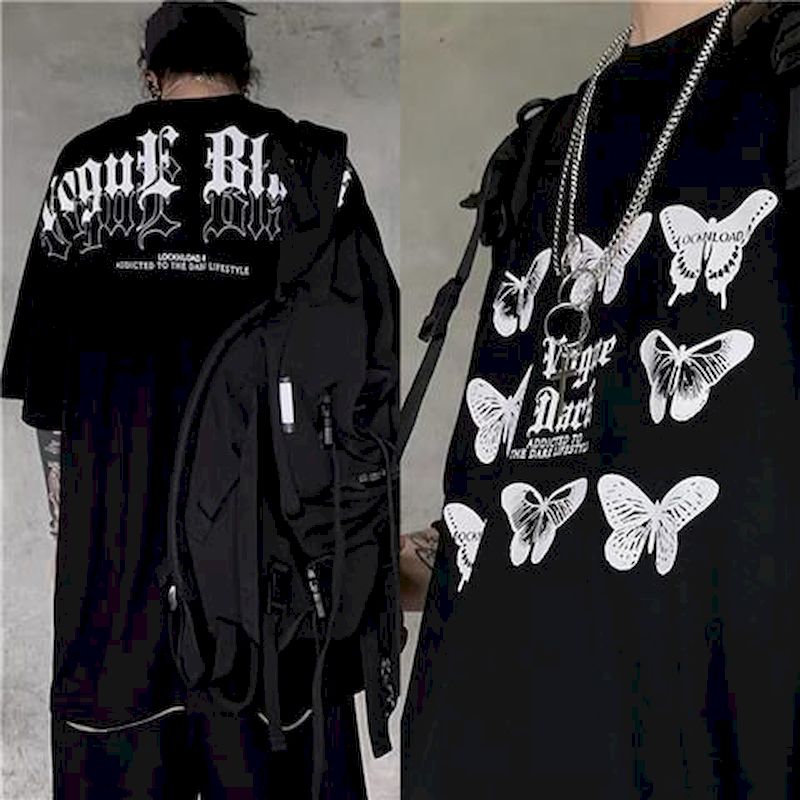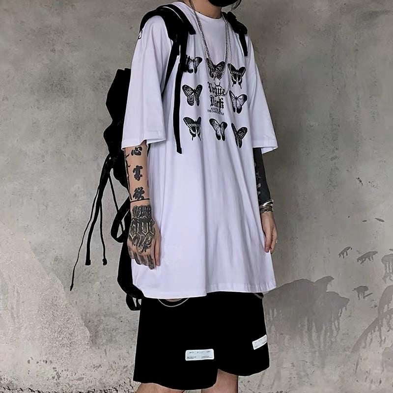 Punk Goth Short-sleeved Tshirt Women T Shirt Men Summer Dark Gothic Butterfly Letter Print Loose Hip-hop T-shirt Couple Tops