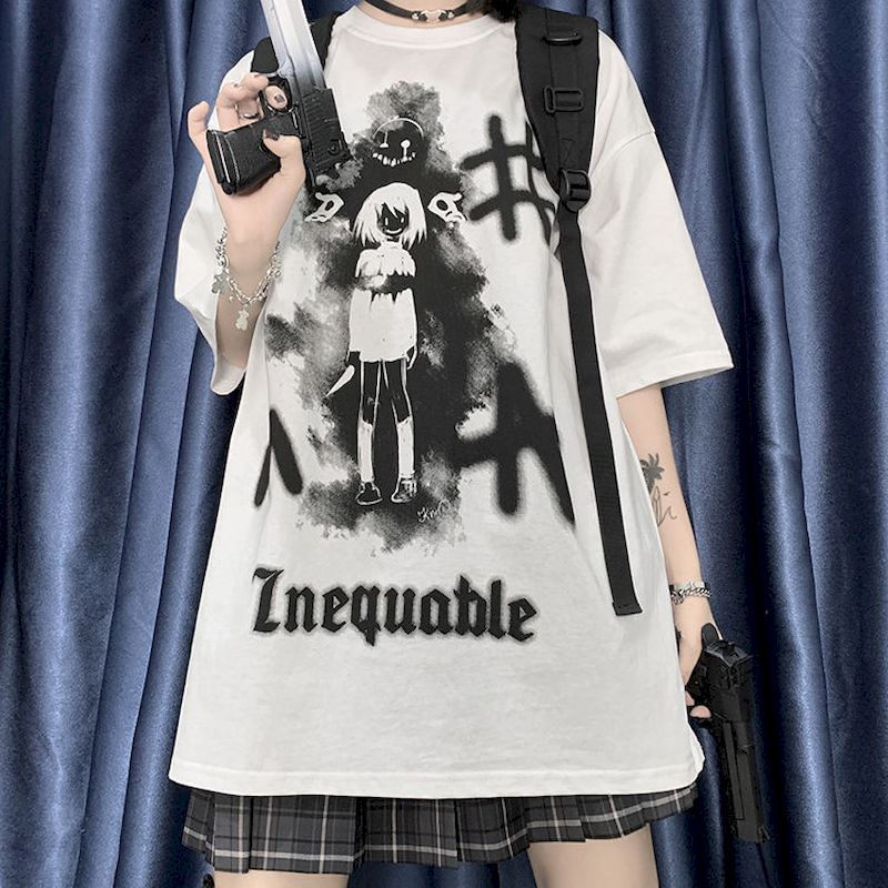 Short-sleeved T-shirt female Korean version of the college style dark graffiti Japanese girl printing loose T-shirt top