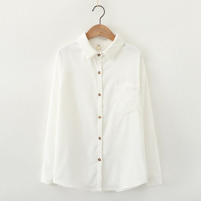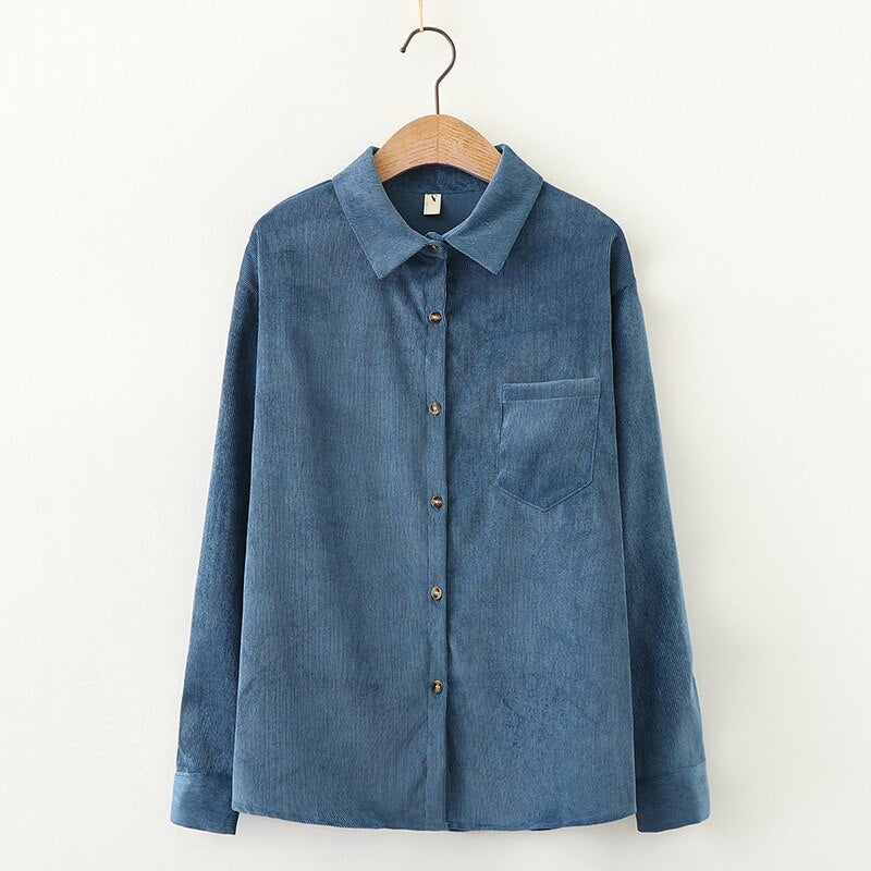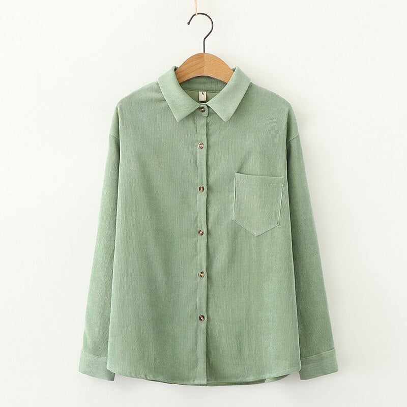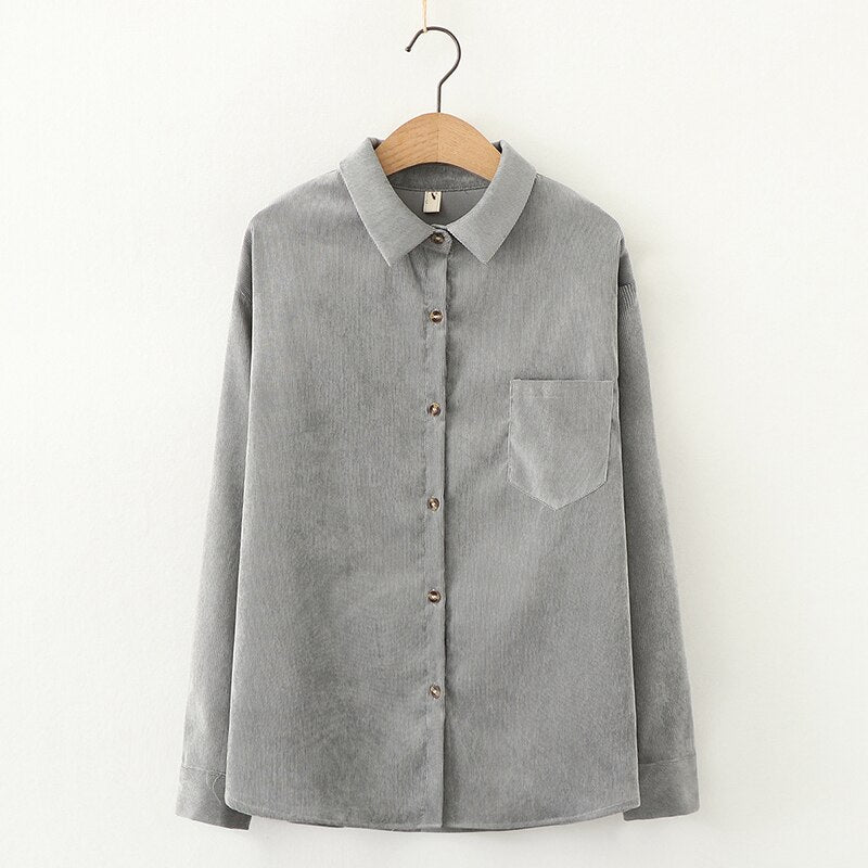 Simple Corduroy Shirts Women 2021 Spring New Casual Loose Blouses and Tops Lady Long Sleeve Blouse Young Style Clothes