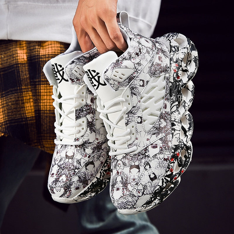 Sneakers Men Graffiti Print Breathable Running Sports Shoes Thick Sole Heighten Street Fashion Shoes Size 46 Tenis Masculino