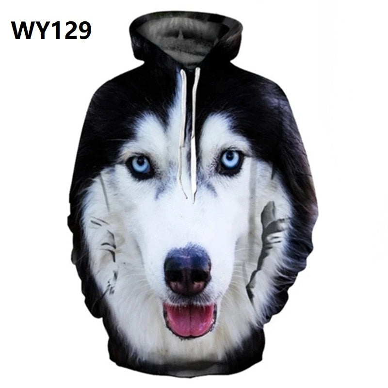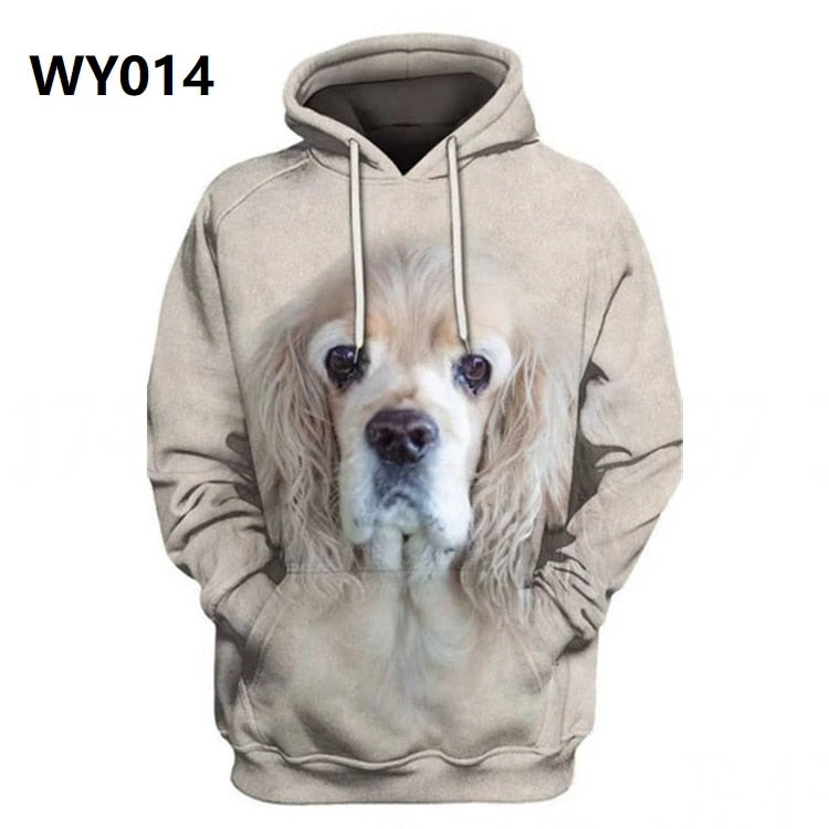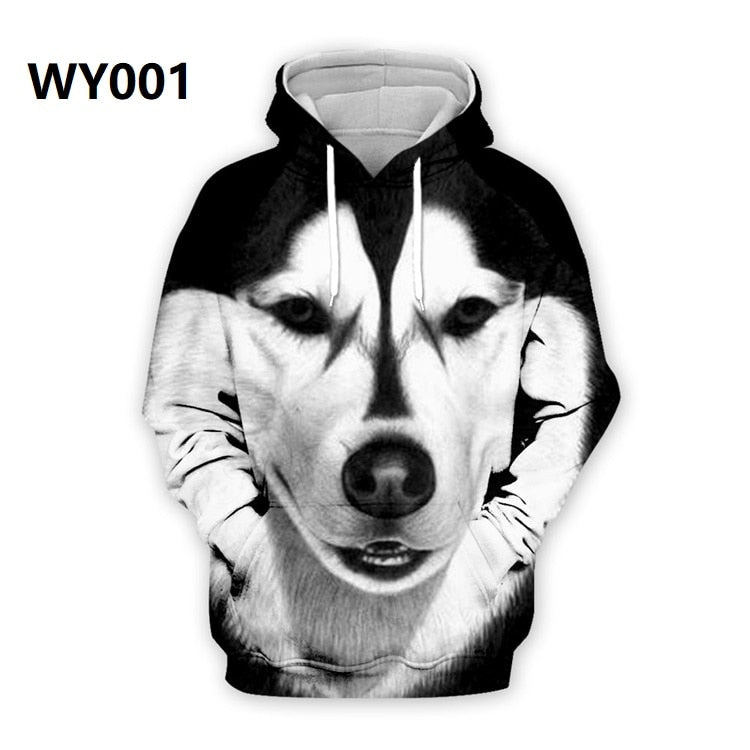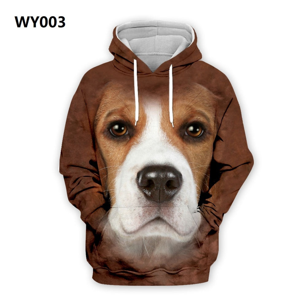 Spring Autumn Mens Hoodies with Cap 3D Digital Dog Pet Print Long Full Sleeves Casual Hip Hop Counple Women Clothes Front Pocket