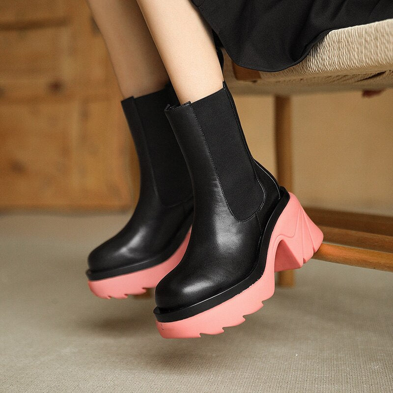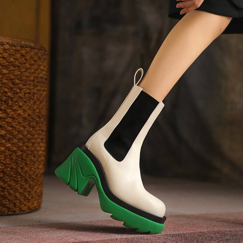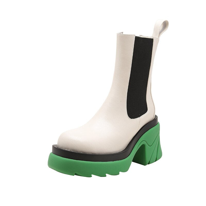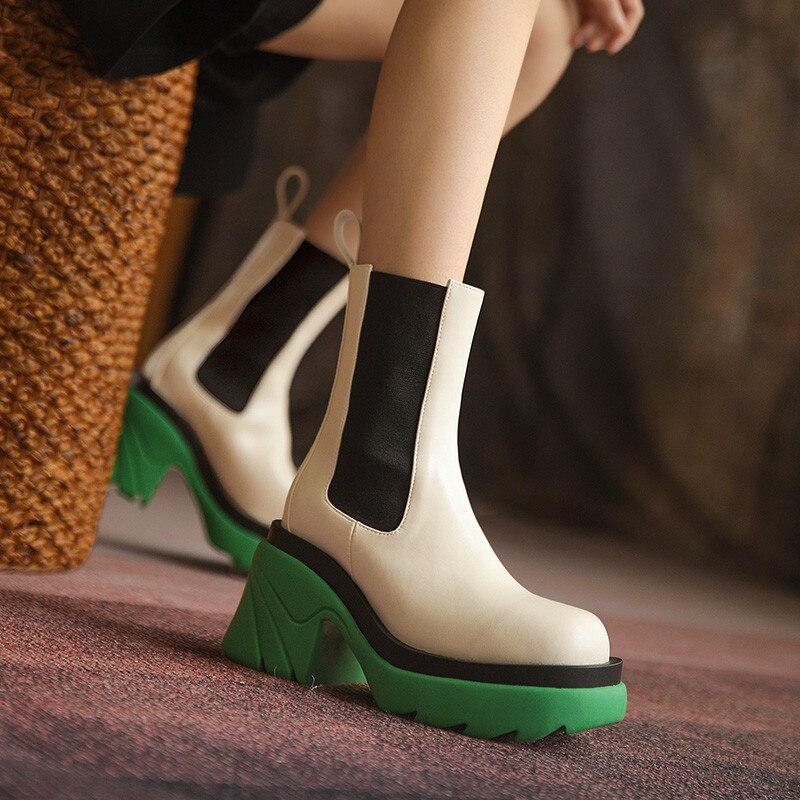 Street Trend High Heel Women BV Chelsea Boots Mixed-Color Slip-on Ladies Punk Ankle Boots Leisure PU Women Platform Shoes