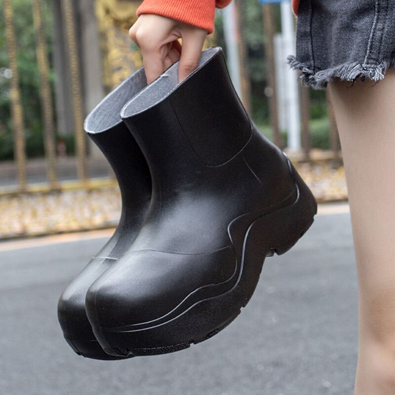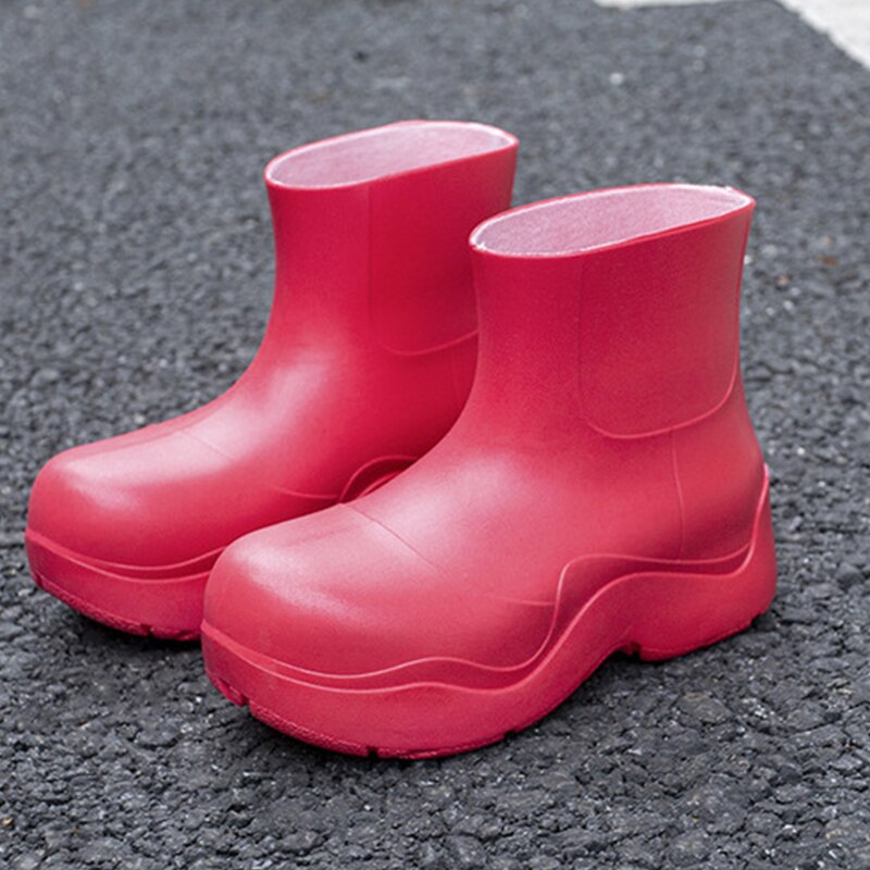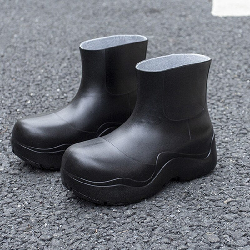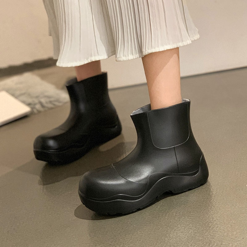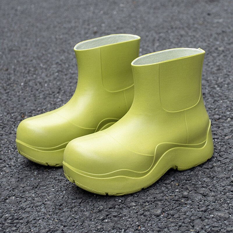 Street Trend  Women Boots Solid Color Waterproof Rain Boots Slip-on Head Short Boots Avocado Ankle Boots PU Women Platform Shoes