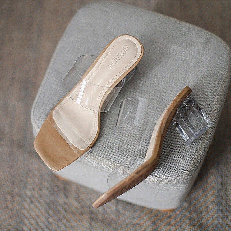 Summer 2021 Sandals For Women PVC Slippers Women's Strange Style High-heeled Sandals Transparent Thin Heel Shoes Large Size