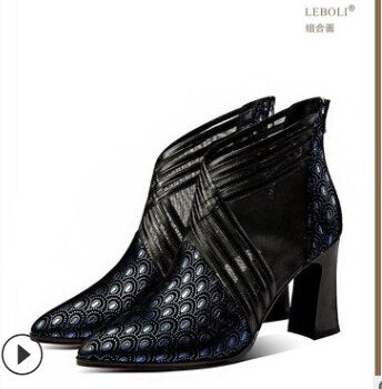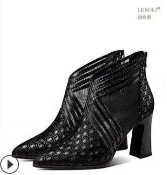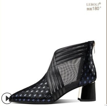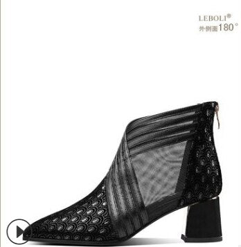 Summer Fashion solid mesh high heels pointed toe cross lines decoration ankle lady boots grace women ventilate boots red/black