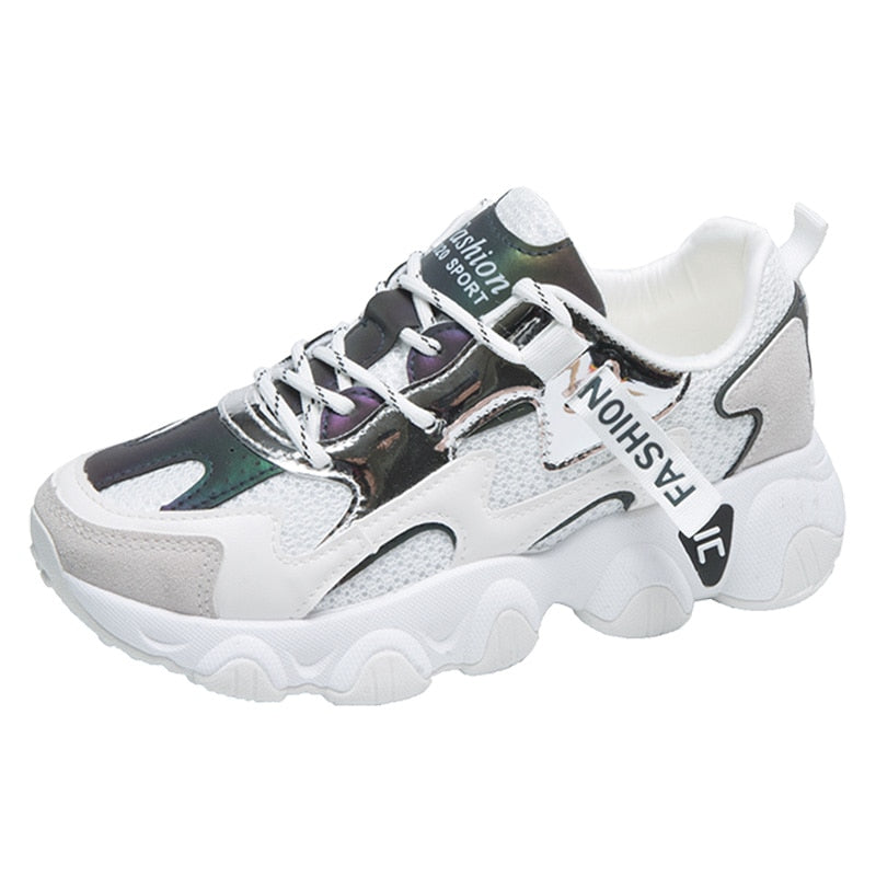 Summer Sneakers Women Vulcanize Shoes Chunky Sneakers Reflective Platform Shoes Woman Basket Femme Dad Shoes Tenis Feminino