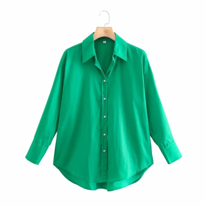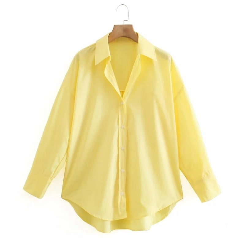 Summer Women Turndown Collar Yellow Loose Blouse Female Long Sleeve Shirt Casual Lady Tops Blusas S8868
