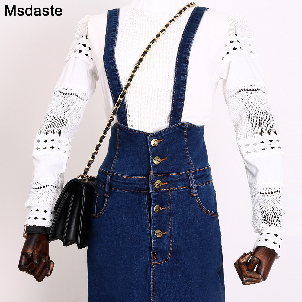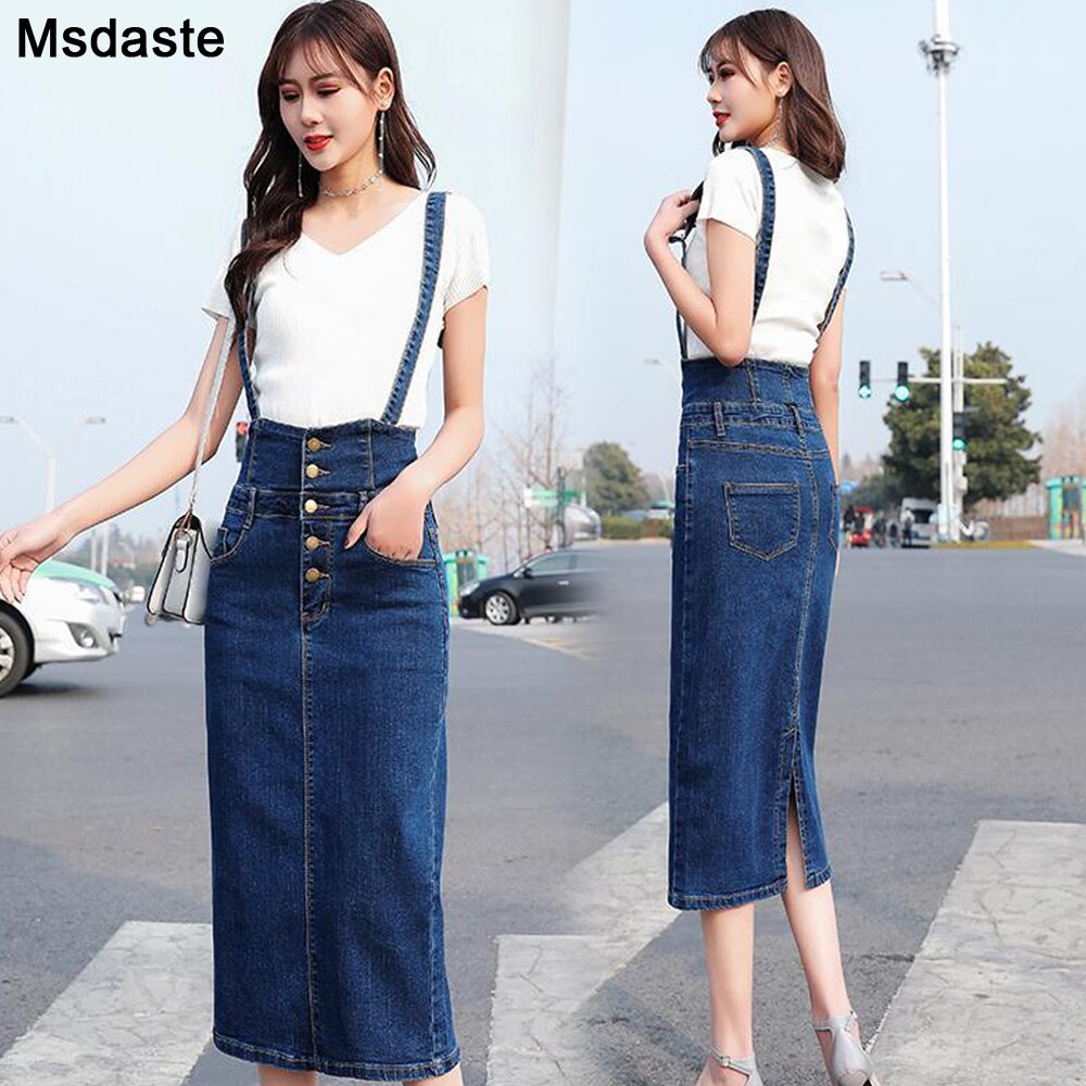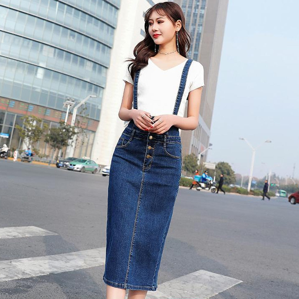 Suspender Skirt Plus Size Women Overalls Stretch Skinny Hip Midi Skirt Vintage Blue High Waist Overall Slim Denim Jeans Skirts