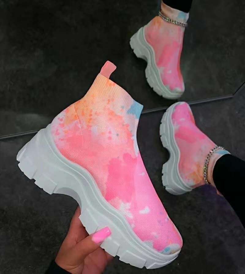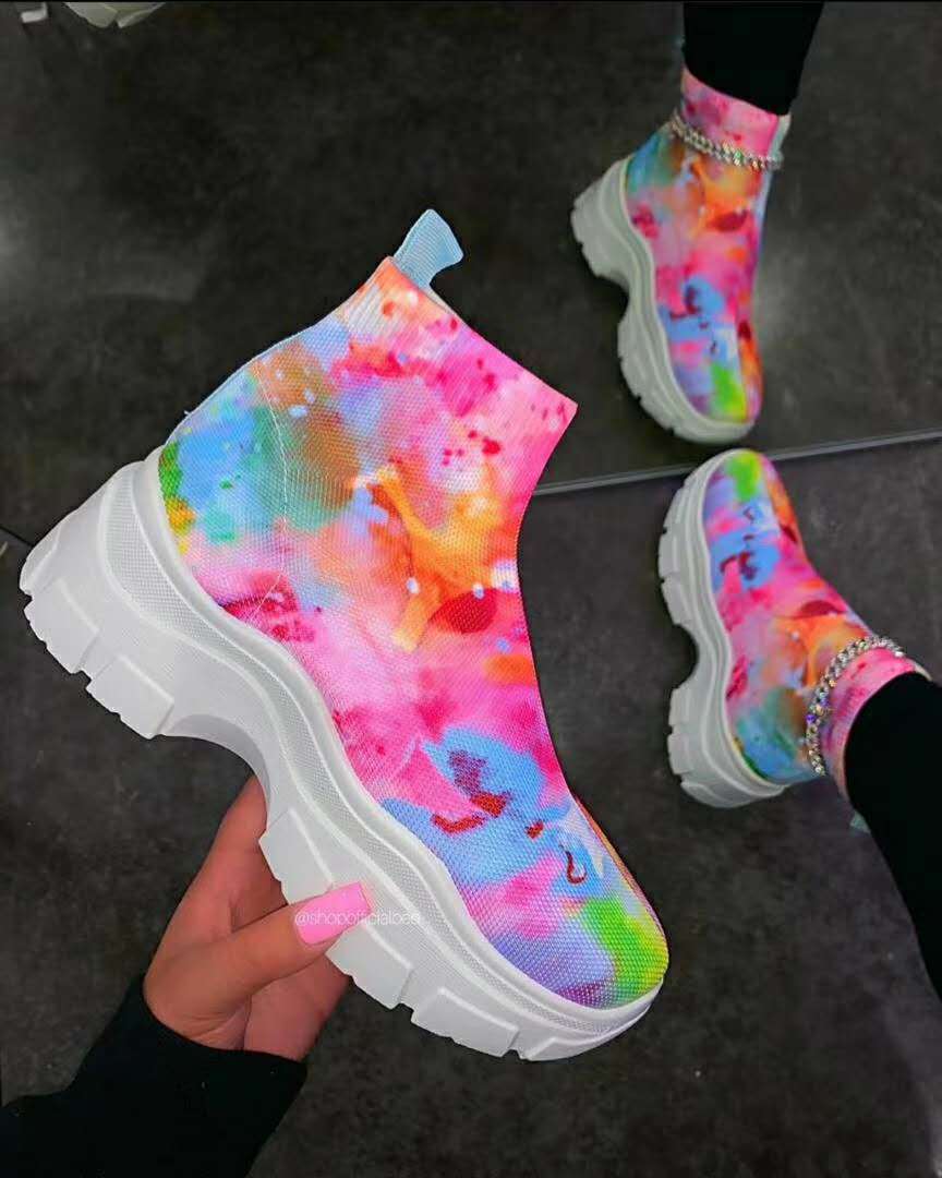 Tie Dye Platform High Heel Short Boots Women Chelsea Boots Shoes Thick Bottom Non-Slip Ankle Boots Autumn Winter Size 43