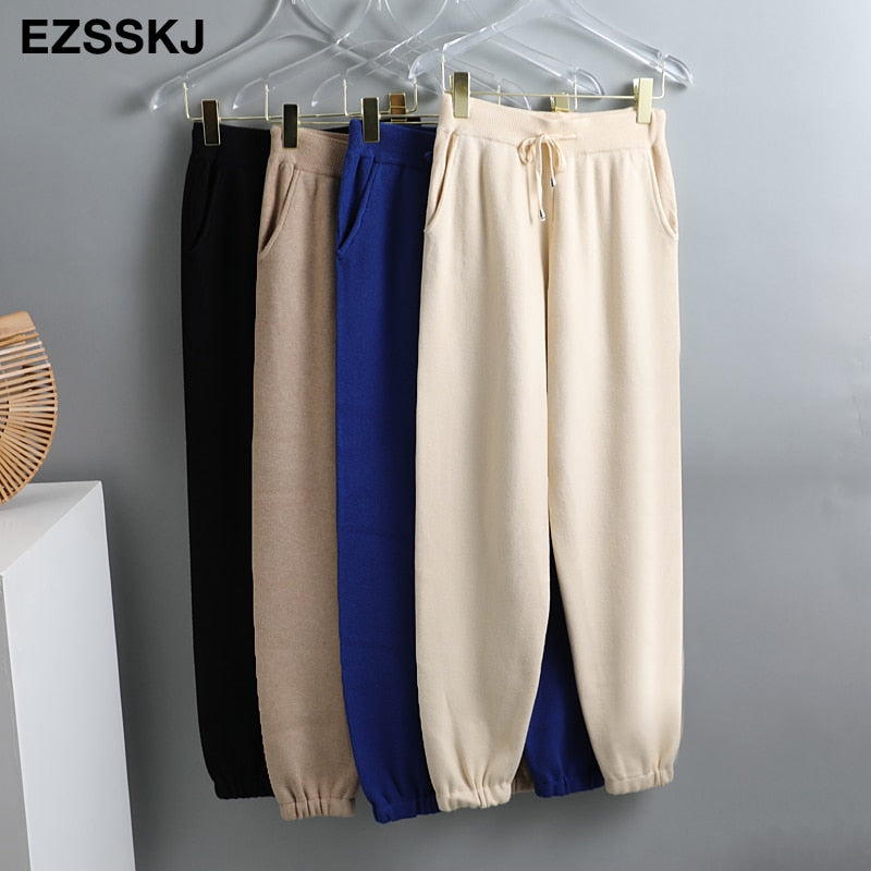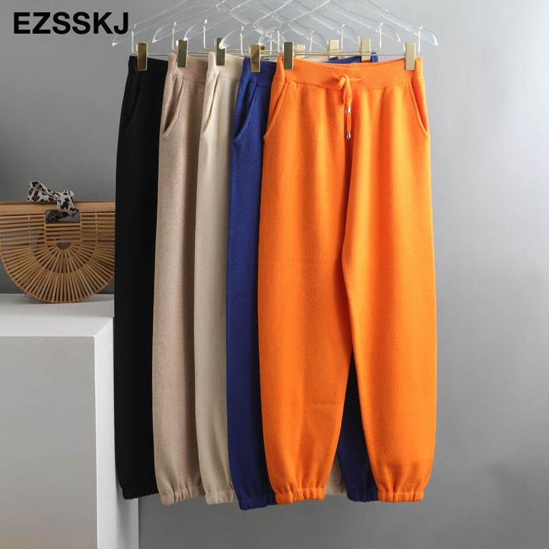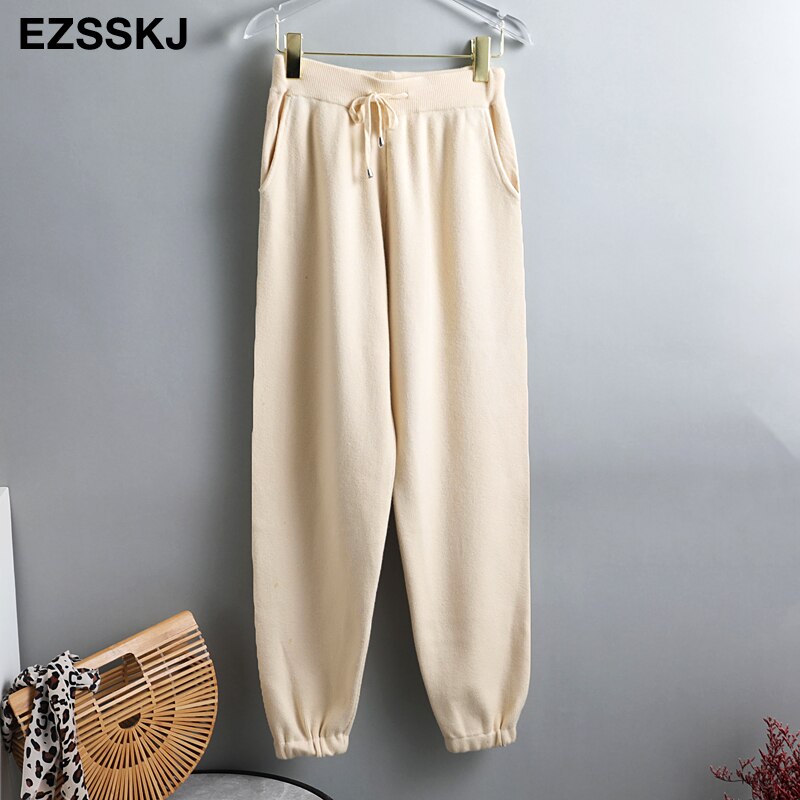 Tracksuit Women Elastic Waist Drawstring Trousers Thick Track warm sweater Pants Autumn Winter Sport swear Women'S Pants New