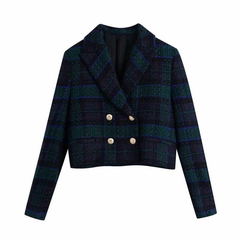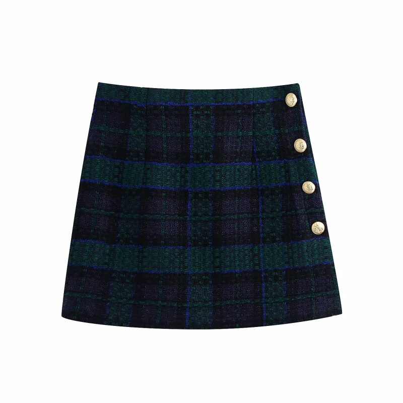 Vintage Elegant Plaid Skirt Suits Women 2021 Fashion Double Breasted Cropped Blazers Side Buttons Mini Skirts Suits