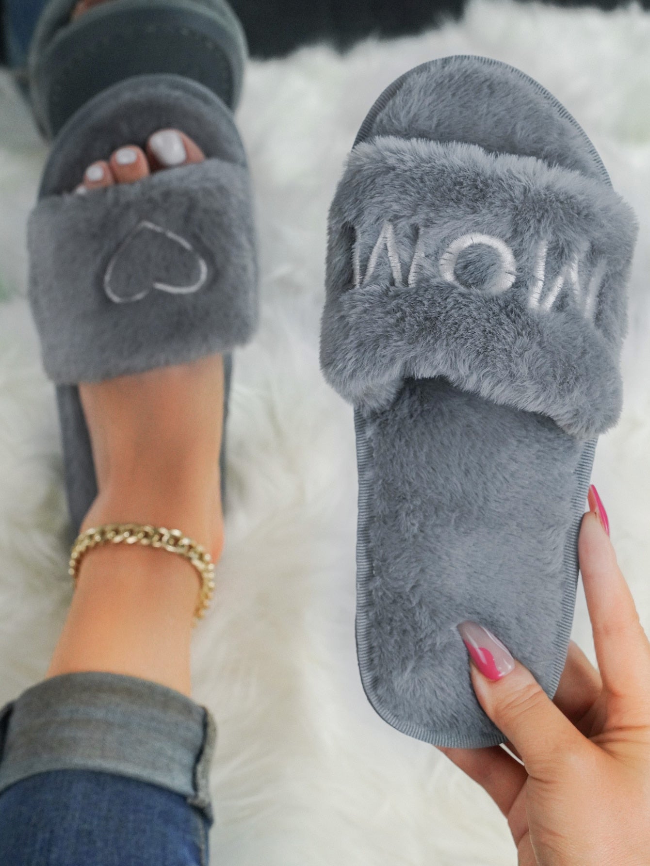 Warm Fluffy Slippers Women Faux Fur Slipper Female Indoor Floor Slides Flat Soft Furry House Shoes Letteer Flip Flops Ladies