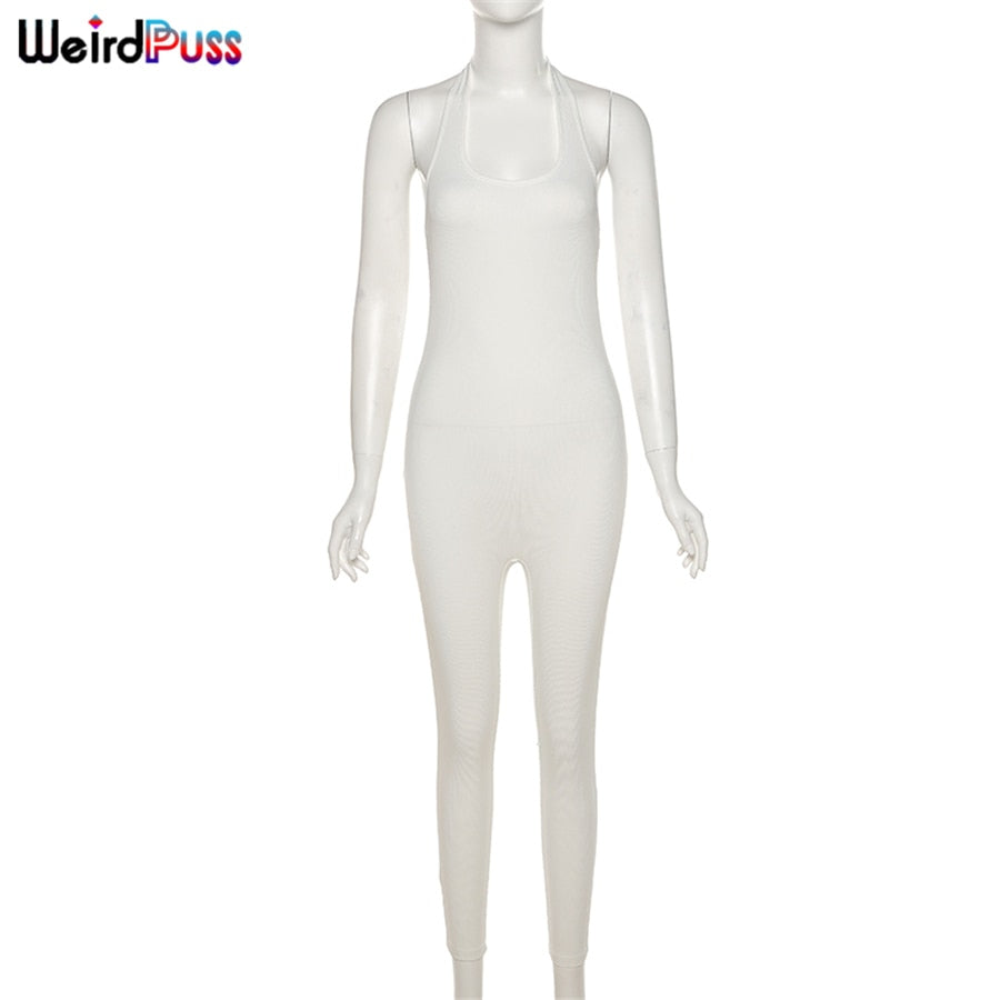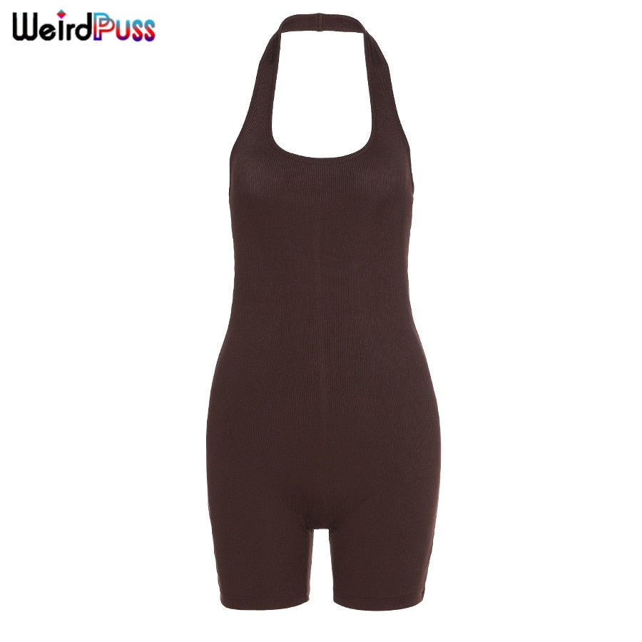 Weird Puss 2021 Spring Overalls For Women Halter Sexy Romper Ribbed Skinny Stretchy Sporty Fitness Backless Playsuits Outfits
