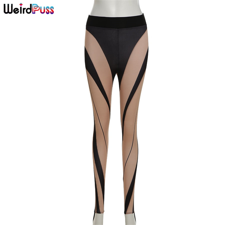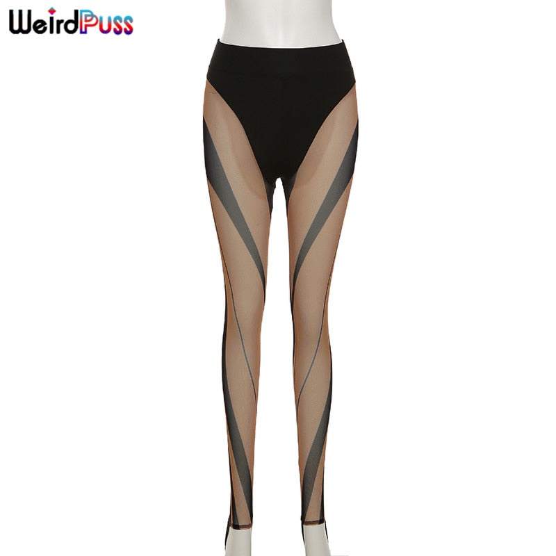 Weird Puss Mesh See Through Fitness Leggings Body-Shaping Sporty Patchwork Summer Fashion Streetwear Workout Wild Skinny Pants