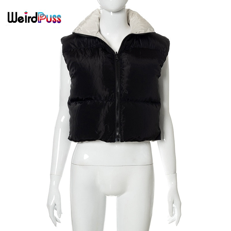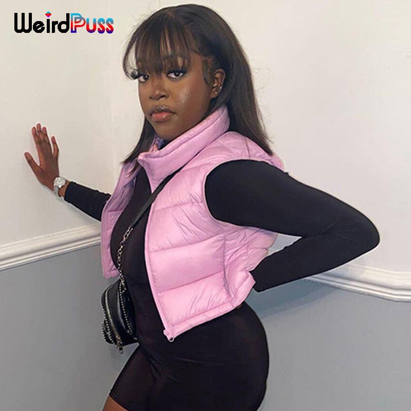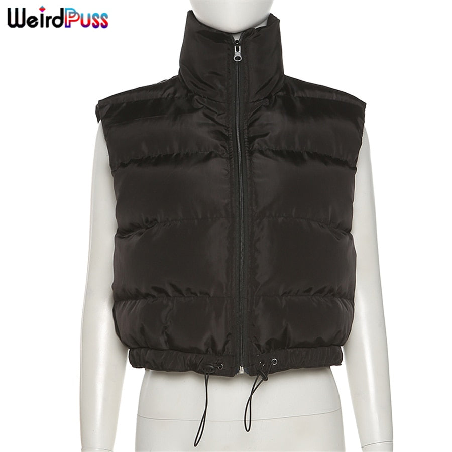Weird Puss Puffer Bubble Jacket Vest Women Padded Thick Zipper Coat Tank Top Turtleneck Winter Warm Short Tops Casual Streetwear