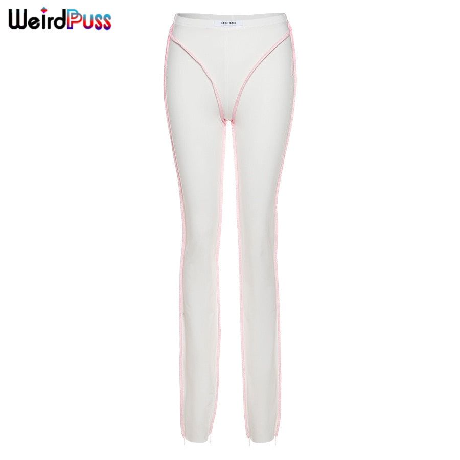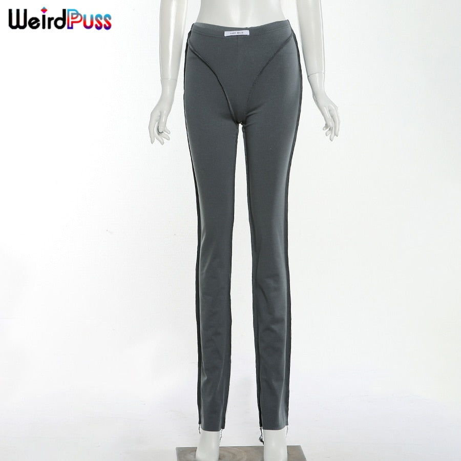 Weird Puss Striped Patchwork Pencil Pants Women Skinny Elastic High Autumn Leggings Trousers Streetwear Casual Wild Sweatpants