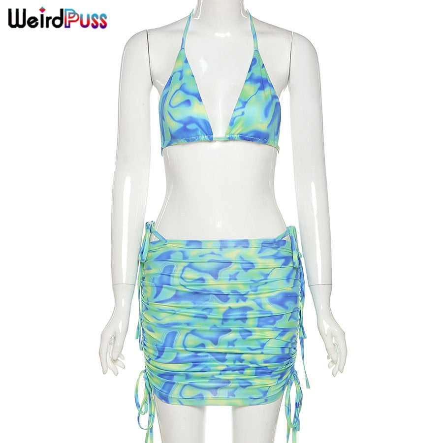 Weird Puss Summer Swimsuit Women Sexy Trend Bikini Tops+Skirt Suits Beach Style Matching Sets Chic Fairy Grunge Vacation Outfits