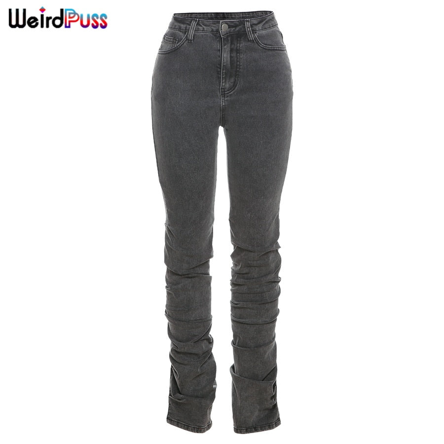 Weird Puss Y2K Stacked High Waist Jeans Women Cotton Split Skinny Denim Pants Autumn Trend Wild Street Casual Stretch Trousers