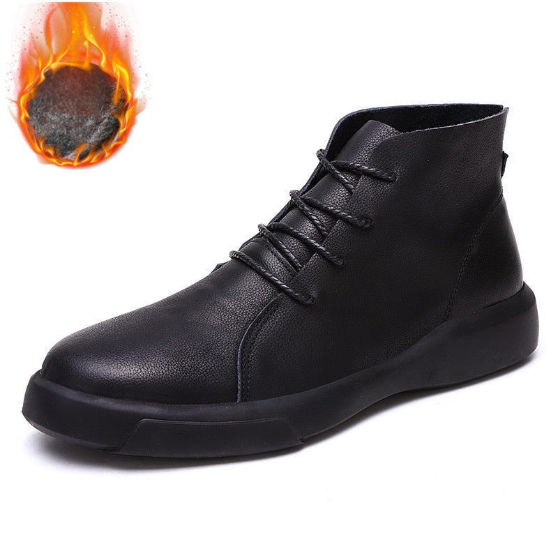 Winter Men Boots Genuine Leather Ankle Boots Men Winter Casual Shoes Men Waterproof Warm Fur Snow Boots for Men Botas JKPUDUN