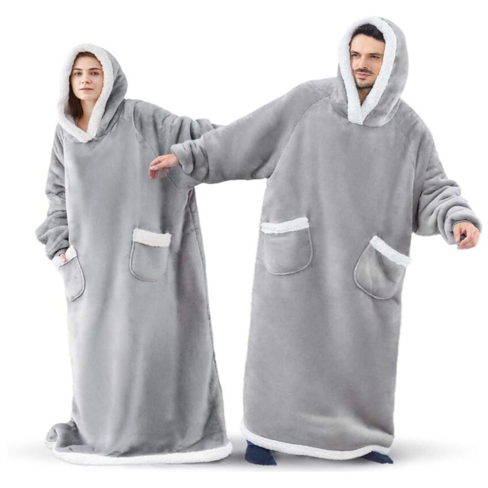 Winter Oversized Hoodies Sweatshirt Women Men Pullover Giant TV Blanket Hoodie Super Long Flannel Blanket with Sleeves Sudaderas