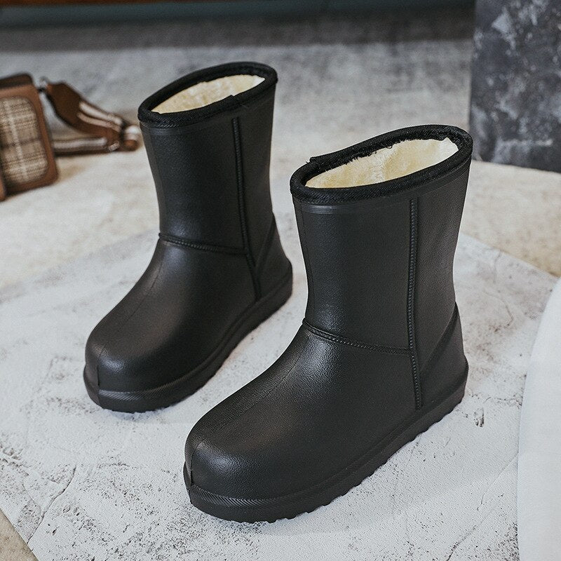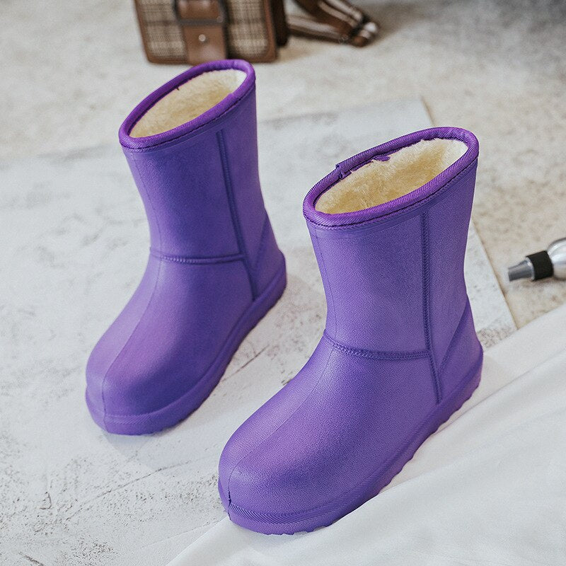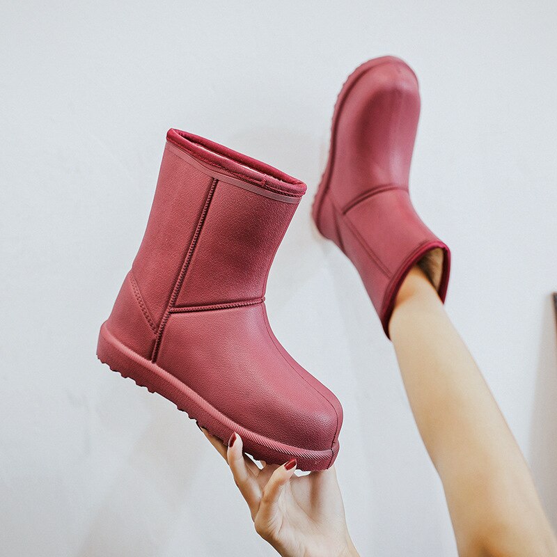 Winter Warm Plush Women Rainboots Solid Outdoor Waterproof Girls Fur Ankle Boots Slip-on EVA Ladies Rain Platform Shoes