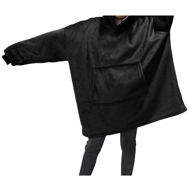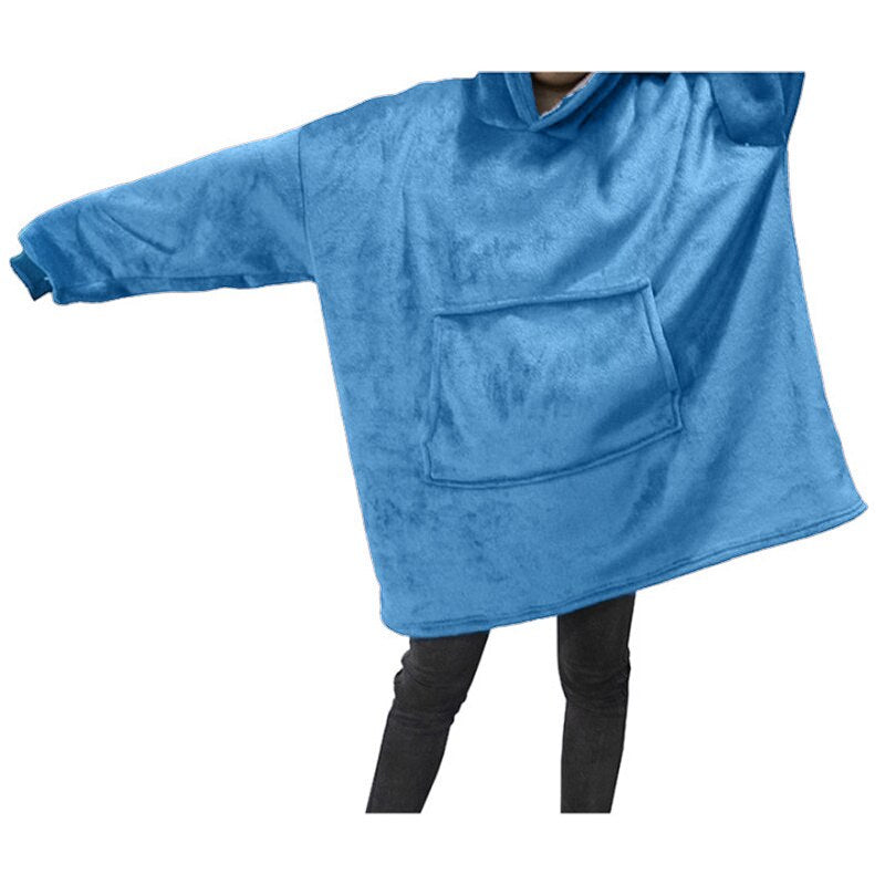 Winter Women Blanket Hooded Sweatshirt Solid Fleece Warm Long Sleeve Oversize Long Hoodies TV Pocket Blanket Female Robe Coat
