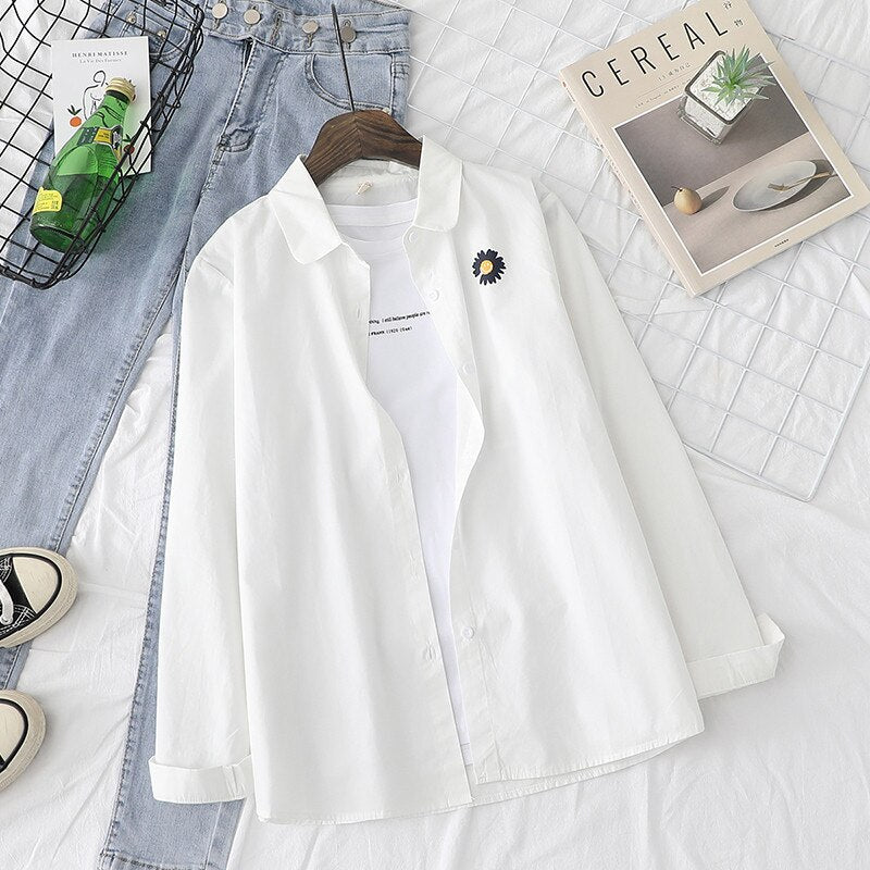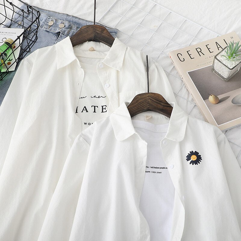 Women Blouses Shirts Tunic Womens Tops And Blouses 2020 Womenswear Long Sleeve Clothing Button Up Down White Flower Good Quality