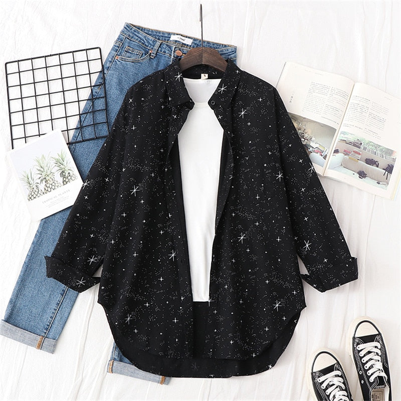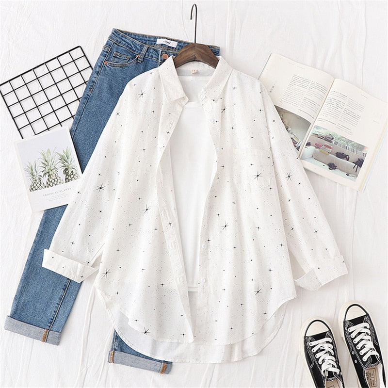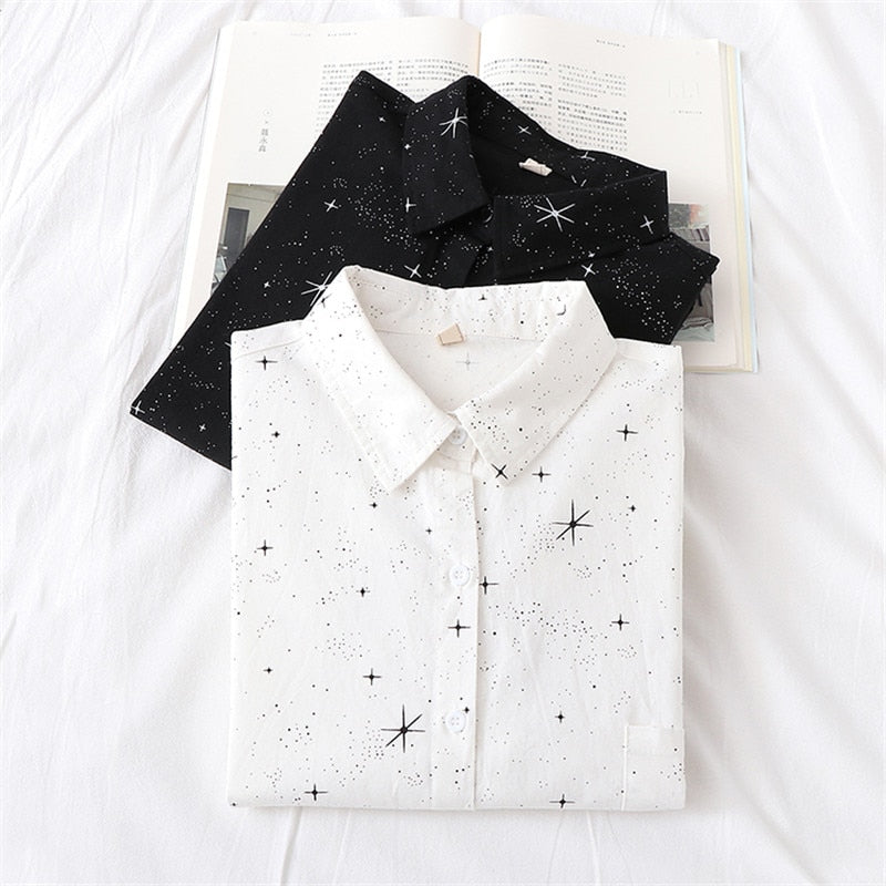 Women Blouses Shirts Tunic Womens Tops And Blouses 2020 Womenswear Long Sleeve Clothing Button Up Down White Star New Fashion