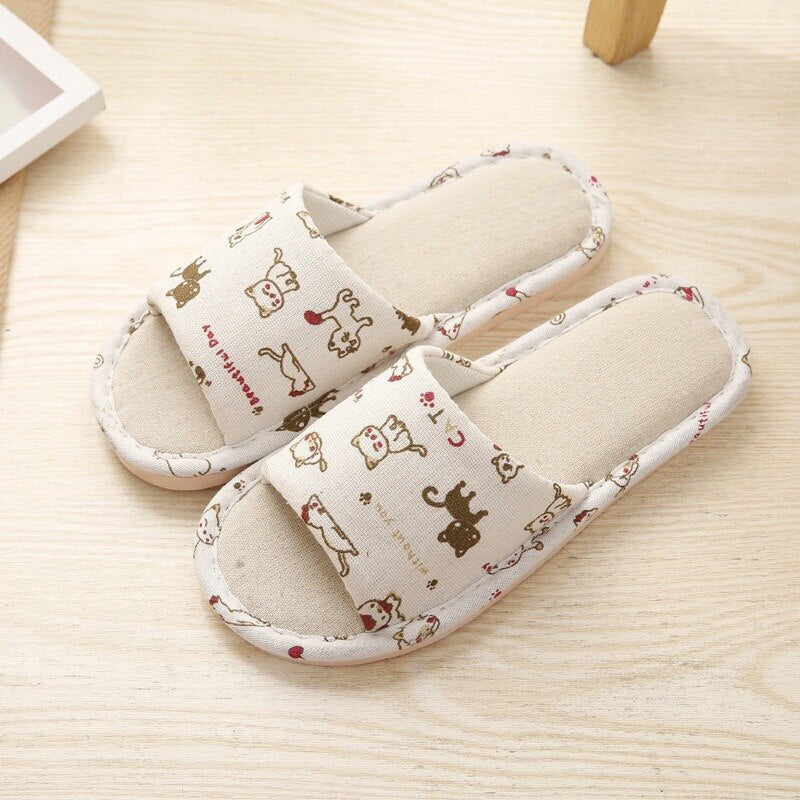 Women Casual Floral Indoor Home Slippers Flower Soft Slippers Spring Autumn Flip Flops Female Linen Slides Slippers home sandals