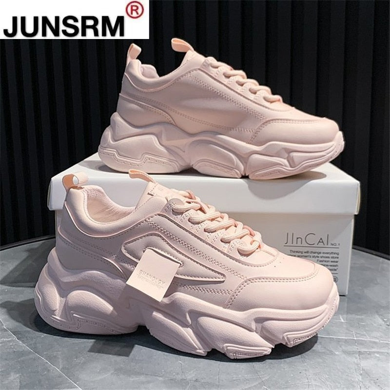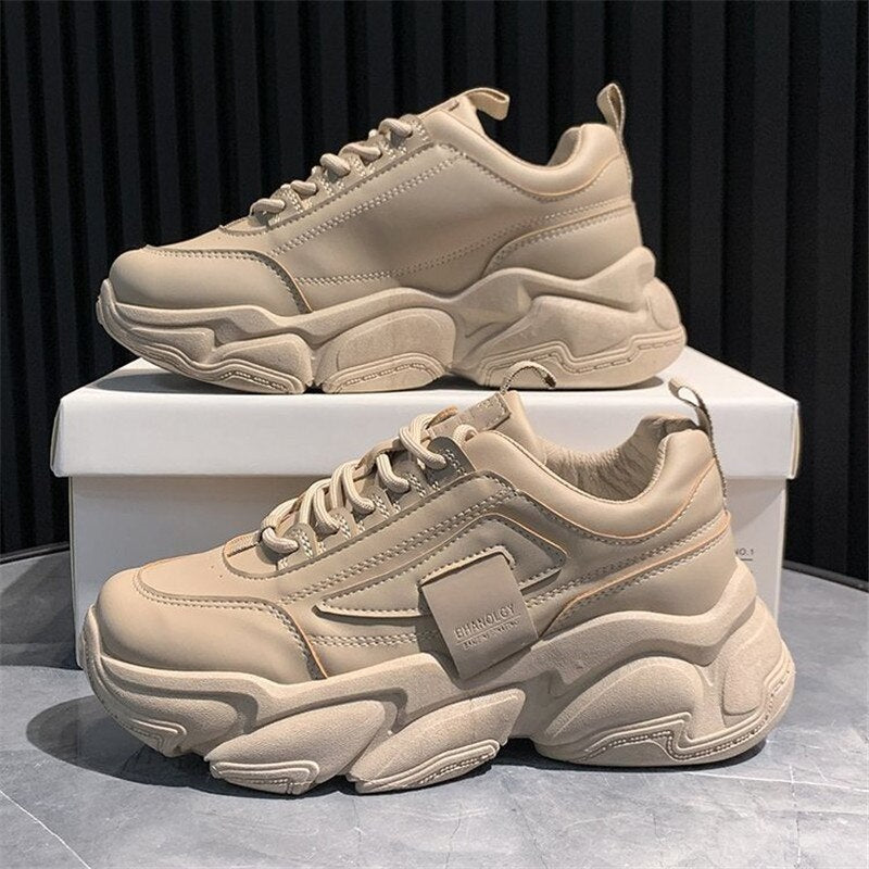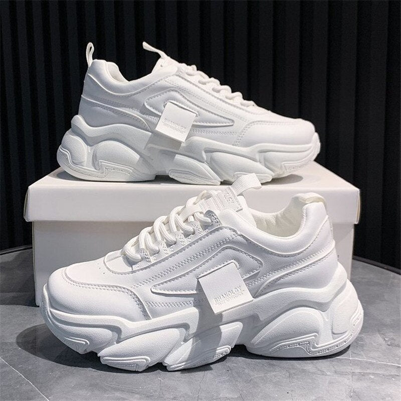 Women Chunky Sneakers 2021 Fashion Platform Sneakers Ladies Brand Wedges Casual Shoes For Woman Leather Sports Dad Shoes 5.5cm