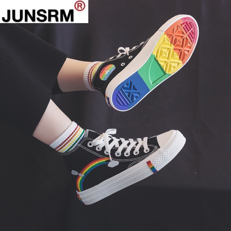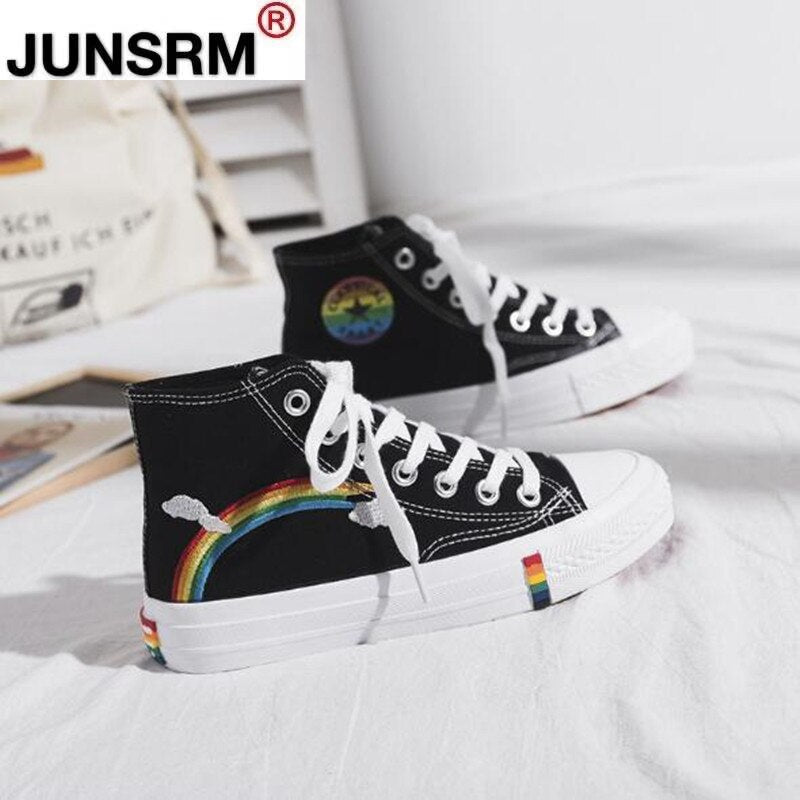 Women Fashion Vulcanized Shoes Women Sneakers New Retro Rainbow Canvas Shoes Ladies Flat Fashion Comfort High Top Shoes
