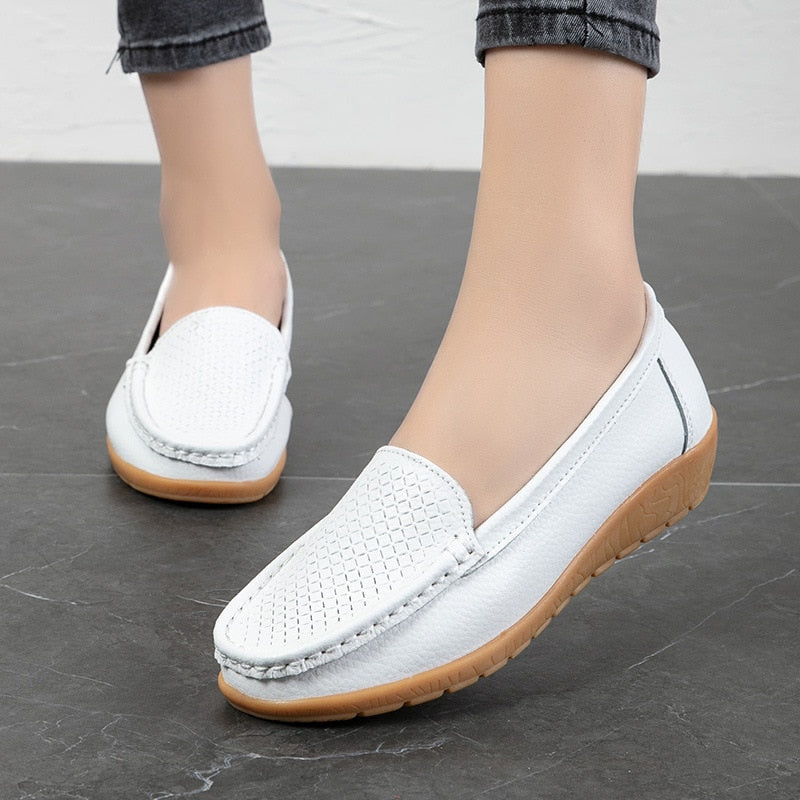 Women Flats Fashion Casual Slip On Loafers Women Genuine Leather Shoes Plus Size Moccasins Woman Shoes Nurse Women Loafers