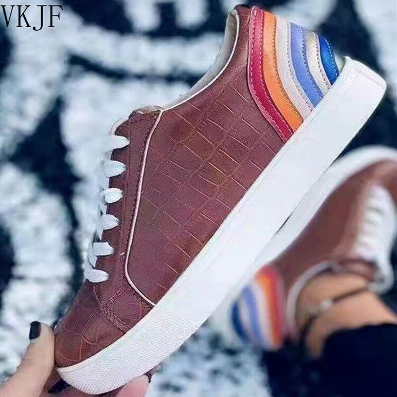 Women Lace Up PU Leather Flats Shoes Ladies Platform Fashion Vulcanized Shoes Female Crocodile Pattern Casual Footwear 2022