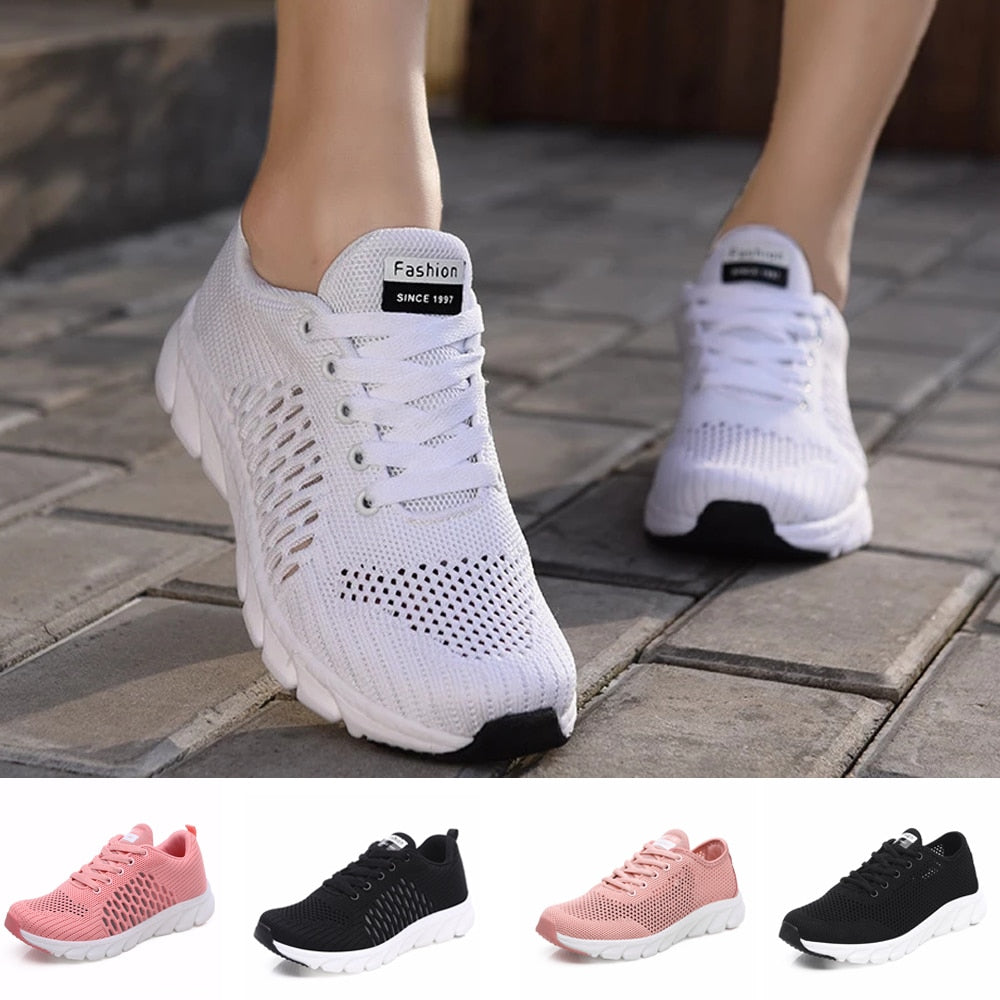 Women Mesh Sneakers 2021 New Breathable Women Flat Shoes Lightweight Casual Sports Shoes Ladies Lace-up Non-slip Sneakers Women