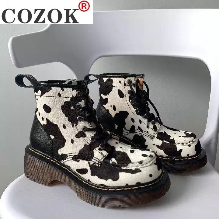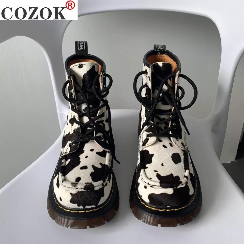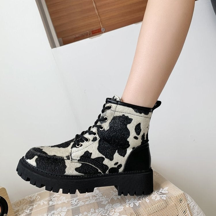 Women Motorcycle Boots Autumn Winter Fashion Solid Color Martin Boots Women High Quality Comfortable Cow pattern Female Boots