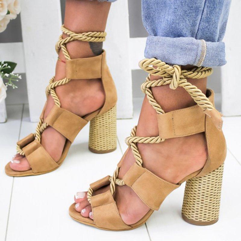 Women New Sandals Women High Heel Peep Toe Lace Up Sandals Shoes Summer Beach Boho Sexy Gladiator Sandals Shoes 2019