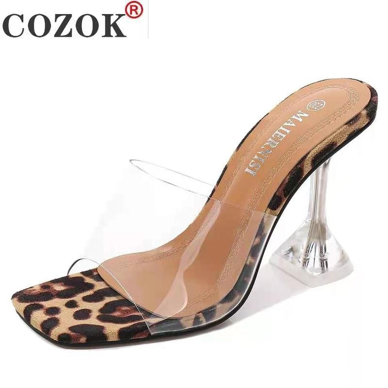 Women Sexy Sandals High Heels Ladies Fashion Slippers Plus Size Square Toe Transparent Pumps New Female Summer Shoes Comfort