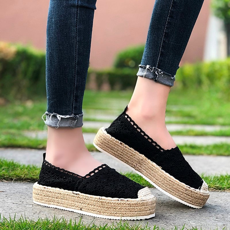 Women Shoes 2021 Fashion Summer Casual Shoes Cutouts Lace Canvas Hollow Breathable Platform Flat Shoes Woman Sneakers