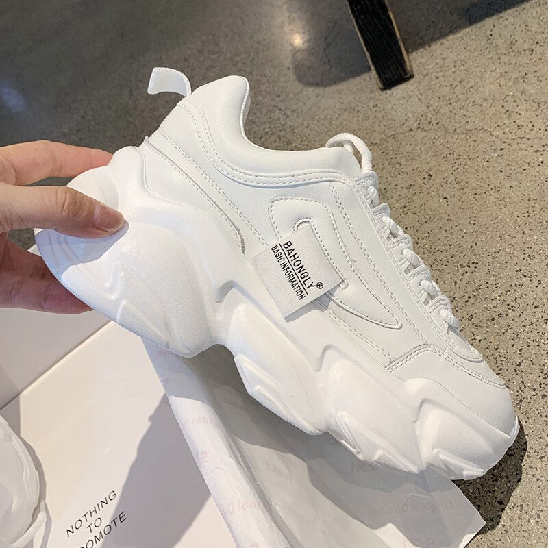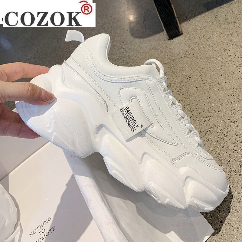 Women Shoes Spring 2021 New White Platform Sneakers Women Shoes Beige Leather Casual Shoes Women Lace-up Women Vulcanized Shoes