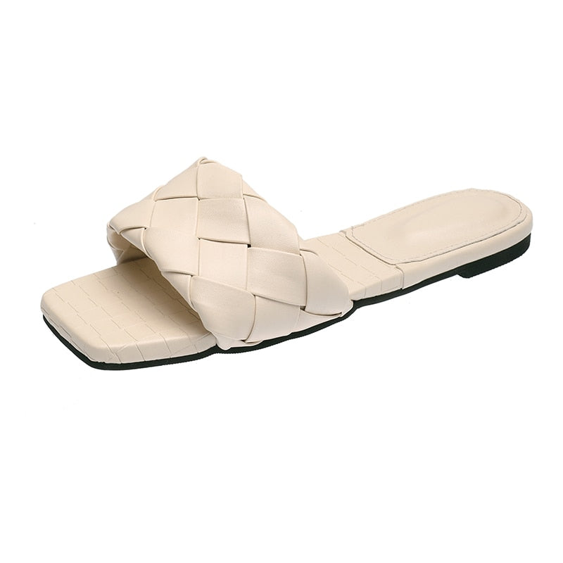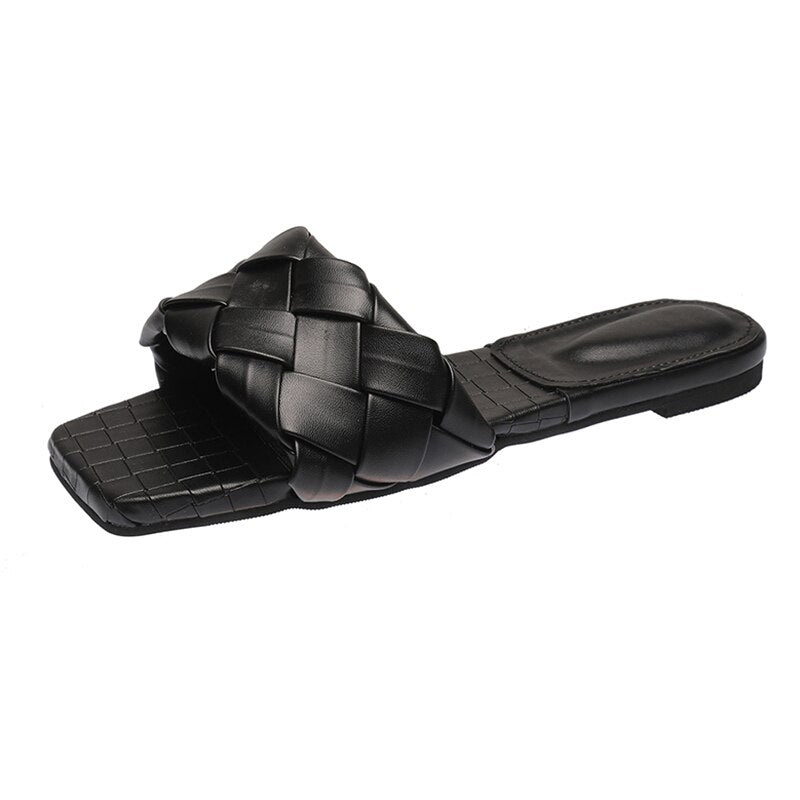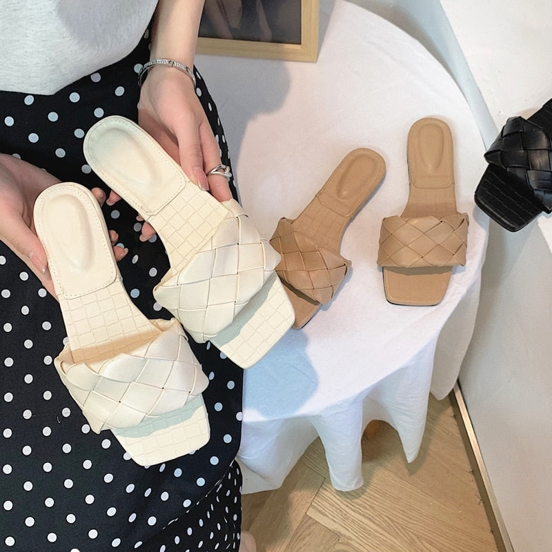 Women Weave Slippers 2021 Summer New Trend Simple Flat Shoes Ladies Diamond Lattice Mules Shoes Sexy Open Toe Ladies Flip Flop