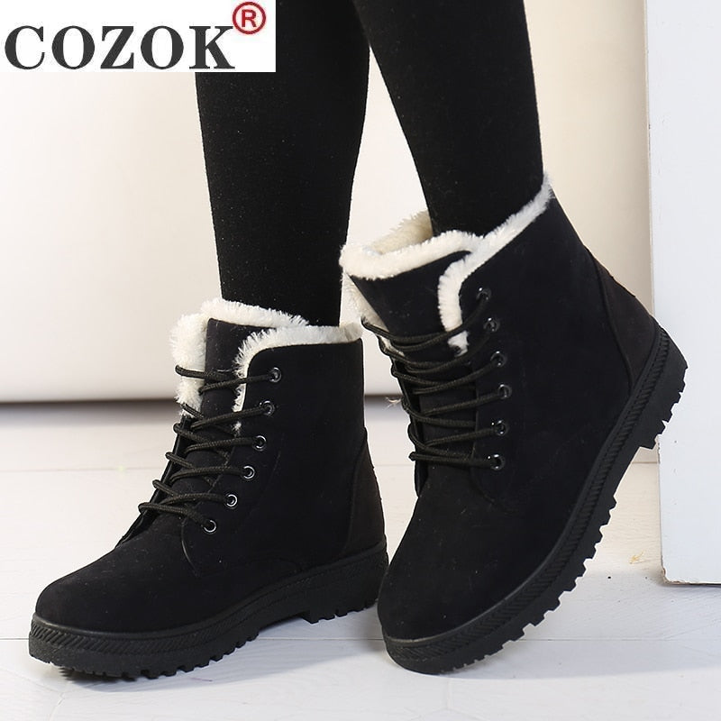 Womens Boot Winter Ankle Boot For Women Winter Shoes With Fur Female Snow Boots Botas Mujer Warm Plush Shoes Woman Plus Size 44