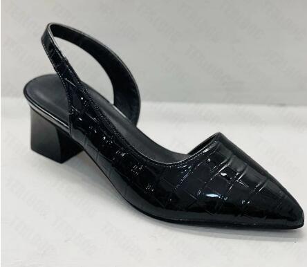 Women's Pointed Toes Pumps Mid Chunky Heels Slingback Sandals Shoes Summer New Vintage Woman Lady Female Sandals Slippers Shoes