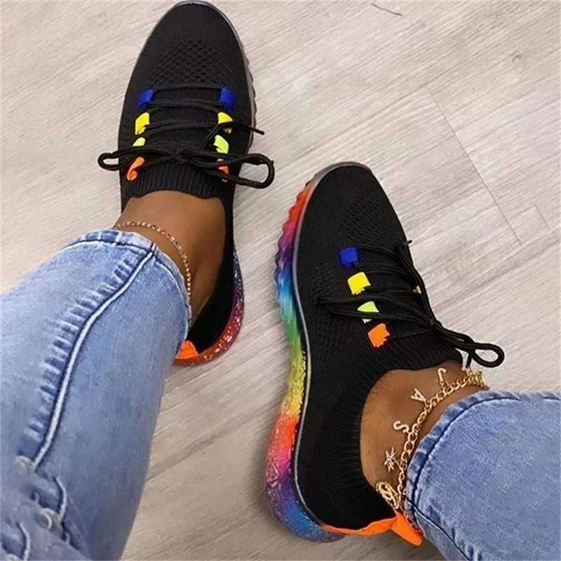 Women's Vulcanized Shoes Platform Ladies Breathable Sneakers Flat Lace Up Female Casual Comfort Plus Size Women Shoe